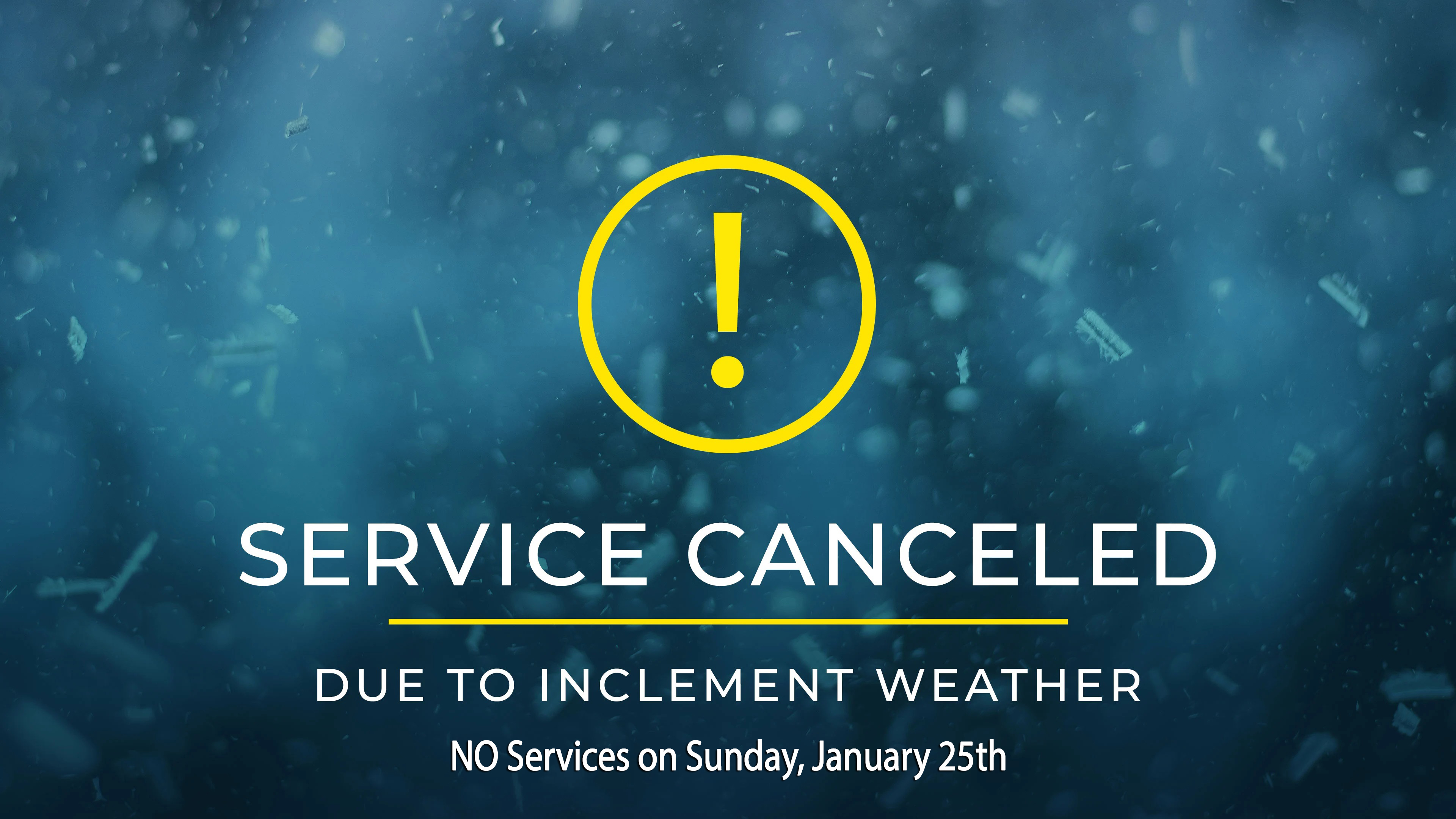 Due to inclement weather, we are canceling all services / activities for Sunday, January 25th. Stay safe and stay warm!